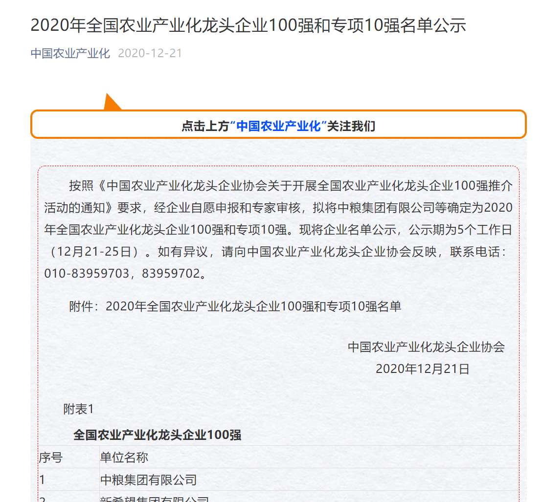 按照《中國農(nóng)業(yè)產(chǎn)業(yè)化龍頭企業(yè)協(xié)會關(guān)于開展全國農(nóng)業(yè)產(chǎn)業(yè)化龍頭企業(yè)100強(qiáng)推介活動的通知》要求,經(jīng)企業(yè)申報和專家審核,公司成功獲評2020年全國農(nóng)業(yè)產(chǎn)業(yè)化龍頭企業(yè)外貿(mào)出口10強(qiáng)。