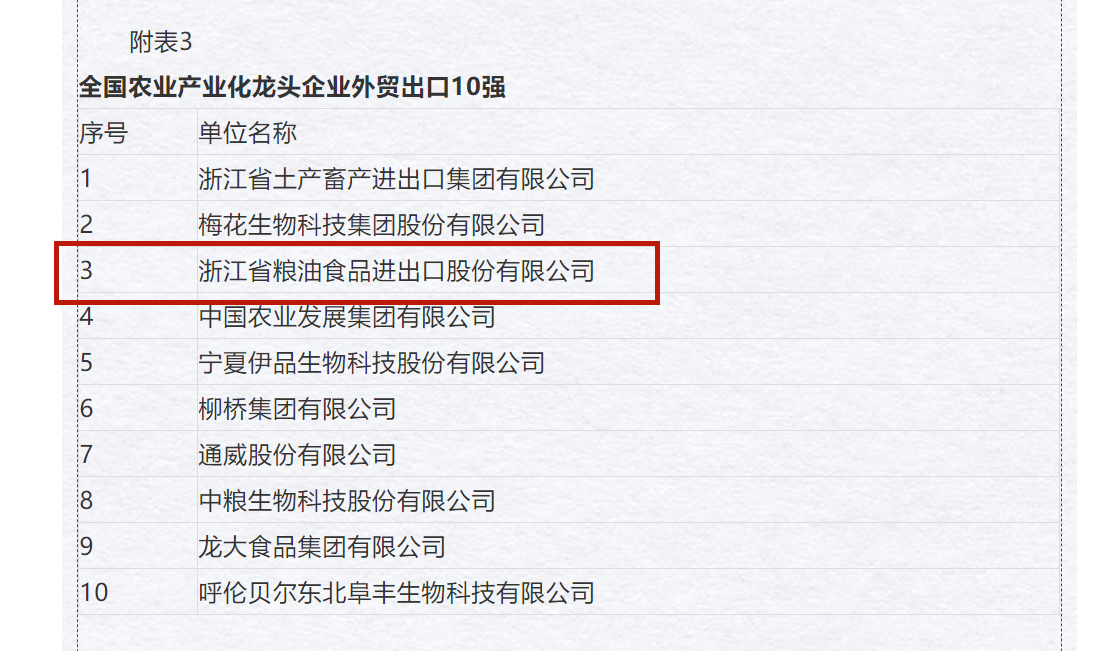公司獲評2020年全國農(nóng)業(yè)產(chǎn)業(yè)化龍頭企業(yè)外貿(mào)出口10強(qiáng)